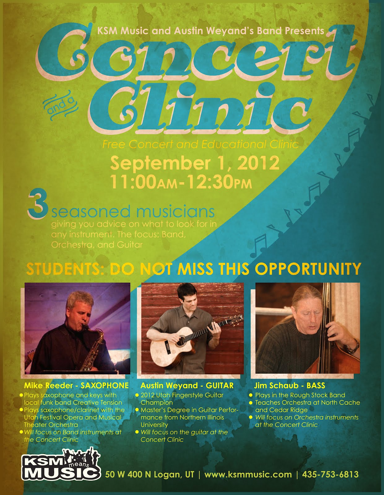 This is a flier I created yesterday for a Concert Clinic we are putting on. It's so much different than anything has put together for KSM Music. I'm interested to see the reaction of students while I hand these out to different schools. If they act a bit more impressed, and feel like KSM is more professional. Normally, someone throws together a little word doc with a couple pictures inserted, and of course the KSM Logo (that is terrible...I just have to say.)